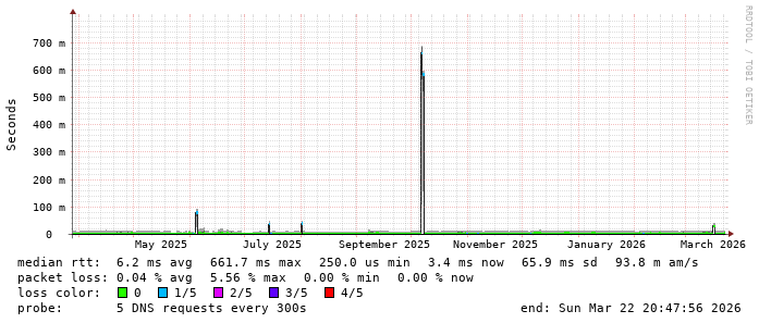 DNS check detskylekarvotice.cz using second Google Public DNS server